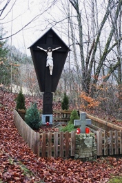 Hausen im Killertal (Turnverein), Stadt Burladingen, Zollernalbkreis, Baden-WürttembergPLZ 72393 Gedenkstätte außerhalb des Friedhofes, gegen den Wald zu, in Form eines Grabes