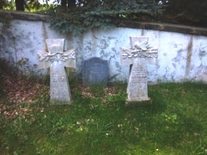 Vor dem Friedhof steht ein Granitobelisk. An der Vorderseite ein Halbrelief eines stehenden Soldaten mit Gewehr. Die Widmung darunter ist nur teilweise zu lesen. Ebenso ist nur eine Namensseite zum Teil lesbar (Gefallene von 1914-1916). Die andere Seite ist völlig verwittert. Auf dem Friedhof befinden sich noch zwei Steinkreuze zur Erinnerung an Gefallene des 1. Weltkriegs und eine Platte an der Friedhofsmauer für 5 Gefallene der Endkämpfe des 2. Weltkriegs.
