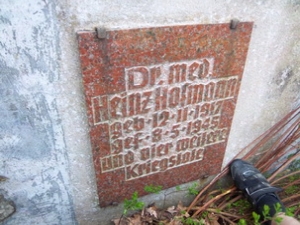 Tafel 2. Weltkrieg: Dr. med. Heinz Hofmann geb. 12.11.1917 gef. 8.5.1945 und vier weitere Kriegstote
