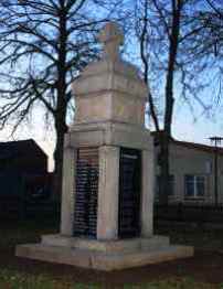 In Dorfmitte in einer kleinen Anlage. Quader auf zwei Stufen, nach oben verjüngend. Auf der Spitze ein Kreuz, darunter Ornamente (Lorbeerkranz mit gekreuzten Schwertern, Stahlhelm), darunter an den vier Seiten je eine schwarze Tafel mit Namen oder Inschrift. In der Kirche Gedenken an die Gefallenen des 1. Weltkriegs auf der Empore aufgemalt (für sieben verschiedene Orte); Ehrenliste für die Gefallenen des 1. Weltkriegs
