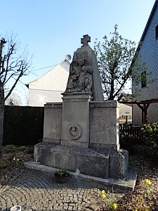 Das Ehrenmal zur Erinnerung an die Opfer beider Weltkriege steht in Ortsmitte an der Bundesstraße B255.
