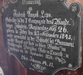 Die Tafel für den 1870 gefallenen ist nicht öffentlich aufgehängt. Sie hängt im Turm