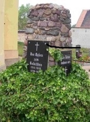 Stele auf dem Friedhof in Hundeluft, enthält nur die Namen der Vermißten des 2. Weltkriegs. Gedenktafel für einen im Krieg 1870 gefallenen in der Kirche.