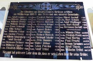 In der Kirche befindet sich auch eine Gedenktafel für den kleinen Nachbarort Tarnefitz. Da dort ein