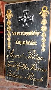 Die Gedenktafel für die Gefallenen des Krieges 1813-1815 enthält keine Daten. Diese konnten