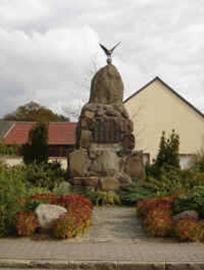 Das Kriegerdenkmal wurde für die Gefallenen des 1. Weltkriegs errichtet. Auf der ursprünglichen Tafel am Denkmal waren zu den Gefallenen viele Daten notieret. Diese Tafel wurde nach 1945 entfernt und sie ist bis heute verschwunden. Die Daten zu den meisten Gefallenen sind in einer Ehrenliste erhalten. Die Ehrenlisten für die Gefallenen des 1. Weltkriegs mussten die Bürgermeister aller Orte in Sachsen-Anhalt für den Volksbund Deutsche Kriegsgräberfürsorge anlegen. Vom Altkreis Salzwedel sind diese Listen im Kreisarchiv erhalten.Nach der Wiedervereinigung wurde am Denkmal eine neue Namenstafel angebracht, die auch die Gefallenen des 2. Weltkriegs enthält, ohne weitere Daten.