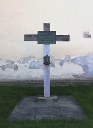 Kaisersteinbruch (Kriegsgefangene), Gemeinde Bruckneudorf, Bezirk Neusiedl am See, Burgenland, ÖsterreichPLZ 2460 Im Friedhof; Betonkreuz mit Plakette