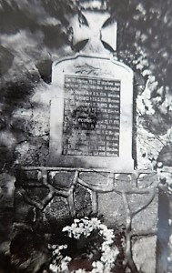 1. Weltkriegs an der Kirchenaußenwand mit krönendem Eisernen Kreuz (abgerissen). Gedenktafeln