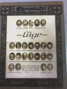 Ehrentafel: Ehrentafel Unseren im Weltkrieg Gefallenen u. Mitkämpfern Lüge (Namen, Bildchen) 1914-1918