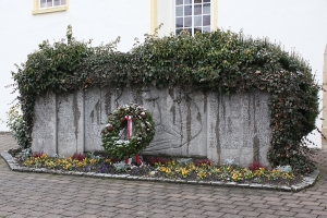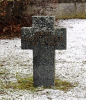 eingravierte Namen. Im Friedhof ein Soldatengrab und ein privater Gedenkstein