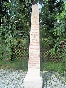Marienberg (1813), Erzgebirgskreis, SachsenPLZ 09496 Hinter dem Bergmagazin (städt. Museum) steht ein ca. zwei Meter hoher Obelisk für den Befreiungskrieg 1813