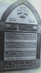 Tafel: 1914 1918 Zu Ehren seiner Gefallenen (Namen) Die Gemeinde Mösenthin