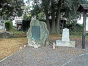 Ein ca. 1,2 m hoher Naturstein an dessen Vorderfläche weiß getüncht die Namen von