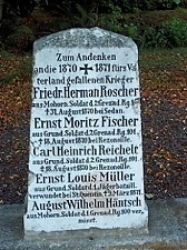 fünf gefallene Soldaten des Krieges 1870/71 stehen.