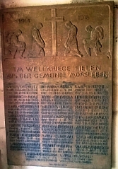 Tafel: 1914-1918 (Kreuz und betende Soldaten) Im Weltkriege fielen aus der Gemeinde Morsleben (Namen)