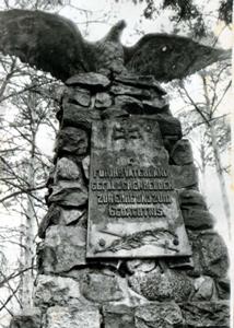 aufgemauertem Granitpodest, aufgesetztem Steinadler und der obigen Inschrift.