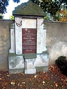 Hier ruhet in Gott unser lieber unvergesslicher Sohn und Bruder Robert Bruno Grabs Flugzeugführer – Unteroffizier b. d. Schutzstaffel 14 16.Nov. 1892 4. Sept. 1917 d. Heldentod bei Verdun Hier gabs für uns kein Wiedersehn. Doch droben in den Himmelshöhn. Ruhe sanft !