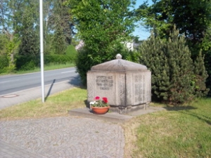 Im Dorfzentrum steht ein ca. ein Meter großer Steinquader für die
