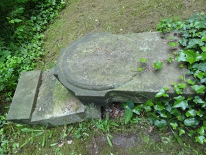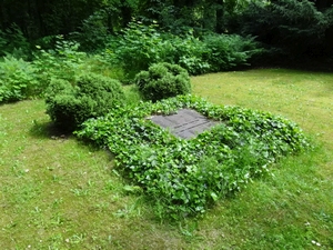 Gedenktafel zerstört, Nachname unklar; „Ach mein Sohn, mein guter Sohn, verloren gingst Du fürs Leben schon. Doch ists mir als riefst Du aus …?“