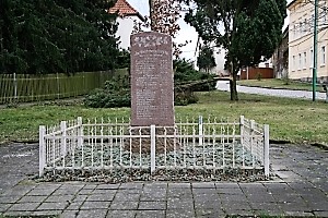 Stele auf Natursteinsockel an der Hauptstraße, Abzweig zur Berggasse