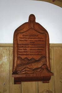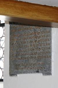 In der Sebastians-Kapelle; eine Tafel im Innern der Kapelle, oberer Teil durch Balken abgedeckt, eine Tafel im Vorraum der Kapelle