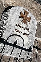 Aus Natursteinen gemauertes Denkmal mit Namenstafel für den 1. Weltkrieg, daran angelehnt Namenstafel für den 2. Weltkrieg (schlecht lesbar). Davor in der Umzäunung liegend ein Stein mit EK und 1914 -1918 sowie 1939 – 1945 im Ort an der Abzweigung der Straße nach Unterhain