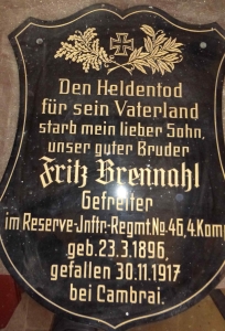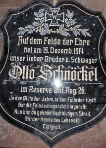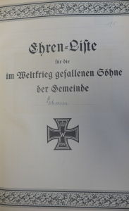 Gedenktafeln in der Kirche; Ehrenliste für die Gefallenen des 1. Weltkriegs