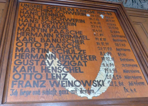 Gedenktafeln in der Kirche, Ehrenliste für die Gefallenen des 1. Weltkriegs