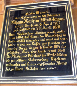 Winkelmann geb. zu Peertz am 4: April 1787 gest. daselbst am 28: April 1878. Unter Napoleon I. zum