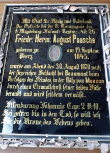 nach der Schlacht bei Beaumont bei Verfolgung der Franzosen schwer verwundet und vermisst