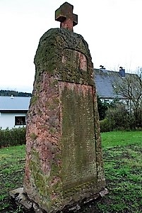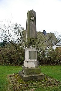 1.Weltkrieg: nur noch Jahreszahlen lesbar 1914-19181870/71: oben: den im deutsch-französischen Kriege 1870-1871 gebliebenen gestiftet 2.Sept. 1890 Eine der vier Sockelseiten: Wachet, stehet im Glauben,seid männlich und seid stark Zwei Seiten des Sockels nicht lesbarvierte Sockelseite Namen