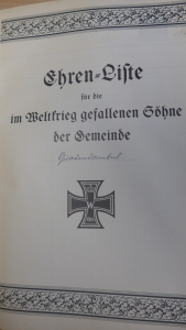 Ehren-Liste für die im Weltkrieg gefallenen Söhne der Gemeinde