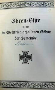 Ehren-Liste für die im Weltkrieg gefallenen Söhne der Gemeinde Rademin