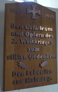 Gedenktafeln in der Kirche; Ehrenliste für die Gefallenen des 1. Weltkriegs, Gedenken auf Familiengräbern für Gefallene des 2. Weltkriegs