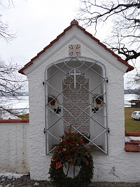 Kleine offene Gedenkstätte in die Friedhofsmauer eingebaut