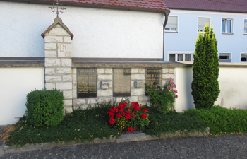 Die Opfer des 2. Weltkriegs für die Orte Kruppach, Rocksdorf, Wettenhofen und Braunshof sind auf schwarzen Steintafeln verzeichnet, die in die Friedhofsmauer eingelassen wurden.