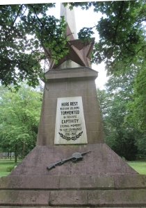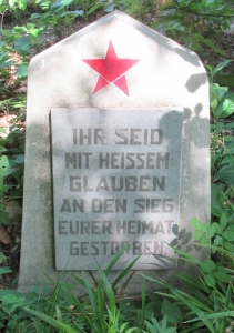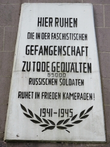 HIER RUHEN DIE IN DER FASCHISTISCHEN GEFANGENSCHAFT ZU TODE GEQUÄLTEN 65000 RUSSISCHEN SOLDATEN RUHET IN FRIEDEN KAMERADEN! 1941-1945