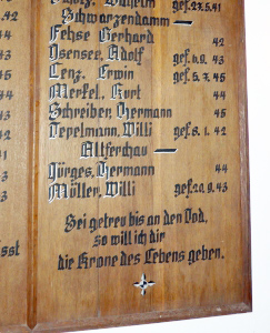 große Gedenktafel für die Gefallenen des 2. Weltkriegs befindet, auf der auch die Gefallenen aus