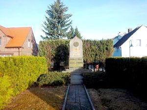 Auf dem Dorfplatz steht ein ca. 2 m hohes Denkmal auf einem Stufensockel. Oben ist ein stilisierter Globus zu sehen, darunter eine Widmung und eine Platte mit den Gefallenennamen des Ersten und Zweiten Weltkrieges