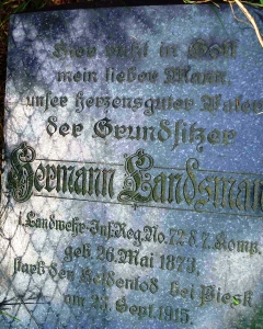 Grab H. Landsmann: Hier ruht in Gott mein lieber Mann, unser herzensguter Vater, der Grundsitzer Hermann Landsmann (Daten)