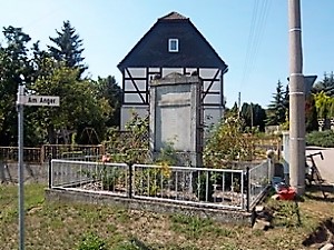 Im Dorfzentrum an der Hauptsstraße steht ein mit einem Metallzaun eingefriedetes Denkmal aus