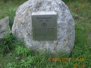 Das Dorf Stöntzsch existiert nicht mehr, es wurde im Feldesverlauf des Braunkohletagebaus Profen in den Jahren 1963 bis 1964 devastiert. Die Namen der Gefallenen wurden der „Chronik von Stöntzsch“ (Herausgeber: VEB Braunkohlenwerk Profen, Zusammenstellung: Karl Kühnast, Zeitz) entnommen.