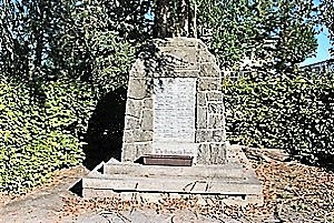 Vor der Schule steht ein ca. 2 m großes aus Granitsteinen gemauertes Denkmal mit