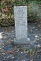 Namensplatte. Daneben eine kleinere Granitstele.