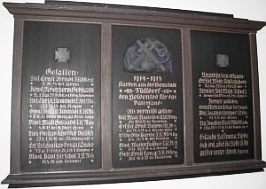 Tafel 1. Weltkrieg: 1914-1918 starben aus der Gemeinde Sülldorf den Heldentod für das Vaterland (Namen) Glaube, Hoffnung, Liebe, diese drei, aber die Liebe ist die größte unter ihnen. 1.Kor.13.13