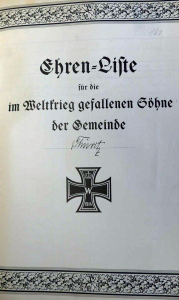 Gedenktafel. In der handschriftlichen Chronik des Nachbarortes Badel ist eine Ehrentafel der Gefallenen