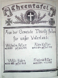 Ehrentafel: Aus der Gemeinde Thüritz fielen für unser Vaterland: (Namen/Bildchen)