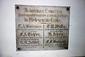 In der Kirche von Trebsen hängen Gedenktafeln zur Erinnerung an Kriegsopfer der Kriege 1870/71 sowie Erster und Zweiter Weltkrieg. Dabei sind die Ortschaften Trebsen, Pauschwitz, Wednig, Walzig, Rothersdorf und Bach getrennt aufgeführt.