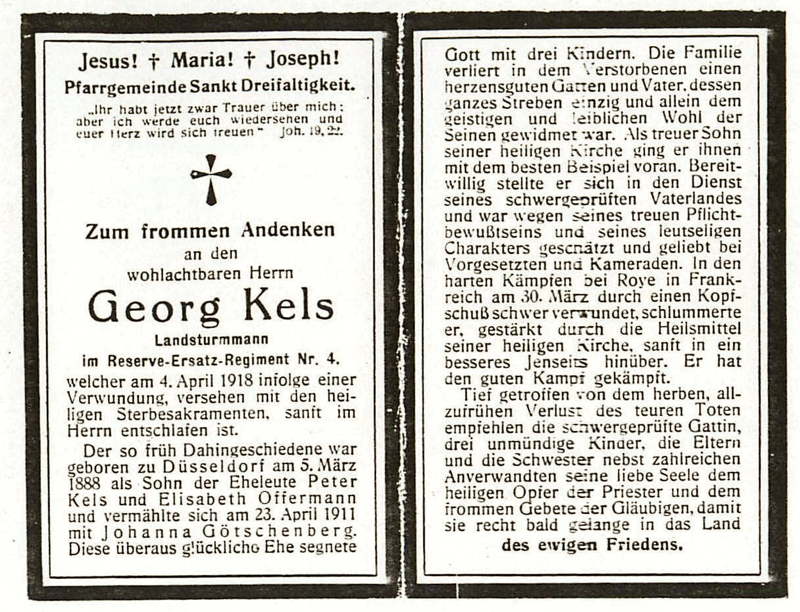 Am 30.03.1918 bei Roye durch einen Kopfschuss schwer verwundet