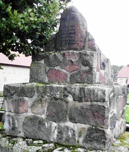 Denkmal für die Gefallenen des 1. Weltkriegs, abgestufter Feldsteinsockel mit aufgesetztem Findling. Ehrenliste für die Gefallenen des 1. Weltkriegs. Soldatengrab und privates Gedenken auf dem Friedhof.